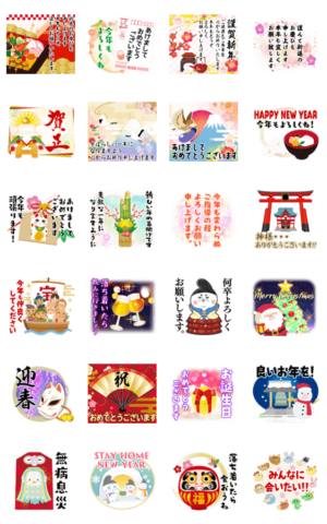 とってもオシャレで豪華なスタンプです。大人っぽいので使いやすく、年末年始の挨拶などには欠かせません。