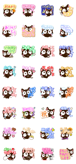 『小さい黒猫スタンプ』の【あいさつ編】になります。小さな黒ねこが、一年中のあいさつをします。猫好きな方にぜひ。【かたこ】