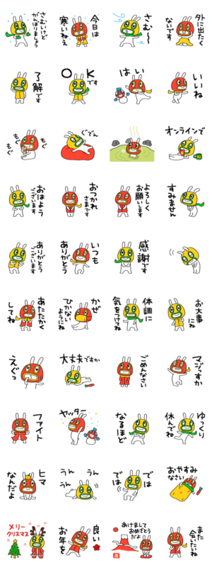謎のマスクのウサギ。冬編。「かぜひかないようにね」から「良いお年を」まで。クリスマス、年末年始、お正月。寒い冬をうさぎマスクマーンと楽しく乗り切ろう。Mami / エストループ より発売