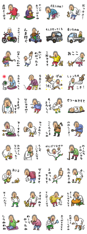 新潟弁おばあさんスタンプ第三弾。新潟県に住んでいる元気なおばあさんが、新潟県の方言、新潟弁を喋ります。今日もネコと孫と犬が、大好きなおばあさんにじゃれてます。Brody Machine より発売