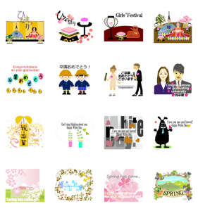 3月の行事をスタンプにしてみました。ひな祭り・ホワイトデー・卒園卒業などのグリーティングカードのように送れるスタンプです。