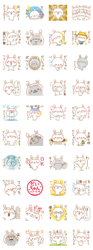 だいちゃんが使うスタンプ。だいき,だいすけ,だいし,だいち,大貴,大輔,大樹,大介,大地,大童など全国のだいくん,ダイちゃん専用のスタンプ