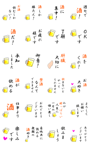 背景が飛び出すエフェクトスタンプです。お酒好きな方ぜひ(ビール、焼酎、日本酒、ワイン、ウイスキー)seven man より発売