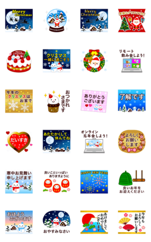 動く大人のクリスマススタンプです。寒中お見舞いなどもあります。
