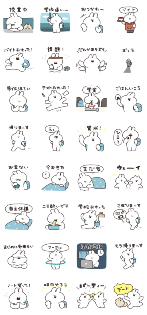 学生のうさちゃんのスタンプは、学生の方にはとても使いやすくてかわいいスタンプです!癒されるスタンプです!