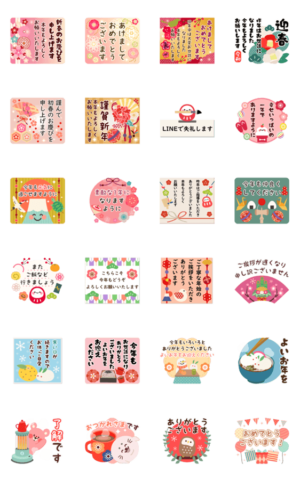 動く大人の華やかマナー年賀状&お正月(再) スタンプ画像一覧