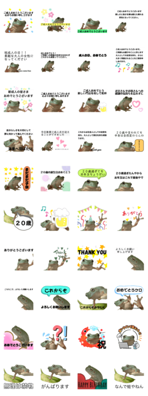 リアルな蛙のスタンプです。おめでとうございます 成人の日Kaerukerokero より発売
