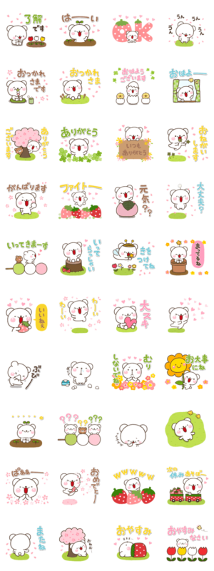 しろくまさんの春スタンプです。季節に合わせた使いやすい内容のスタンプです。【作:いしいともこ】