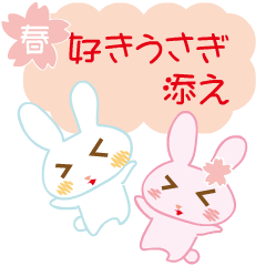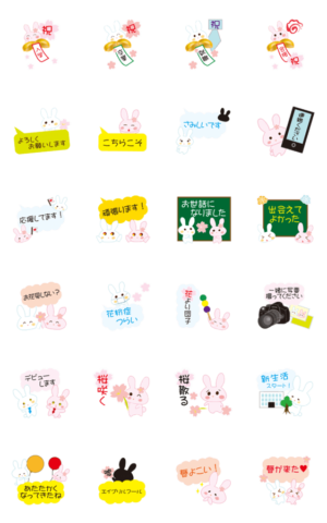卒業式、入学式、合格などのイベントや春の新生活に使えます。好きウサギ応援隊第16弾。ほんわかした春の好きウサギを添えたアニメーションスタンプ(動くスタンプ)。うどんみかん より発売