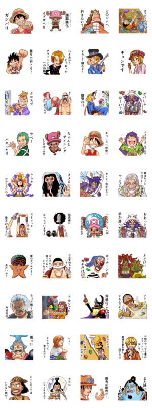 スポーツクライミング、ボルダリングに励むワンピースキャラクターのスタンプ。40個です。ミクジュー より発売