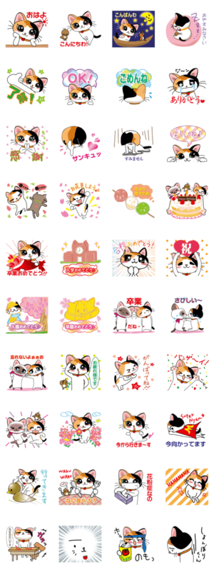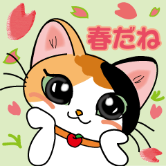 もうすぐ春!卒業、入学、お花見に使える!大人気、三毛猫ちゃんスタンプです。