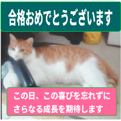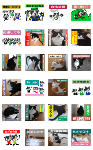 日本猫の銀、 写真バージョン10 合格祈願 スタンプ画像一覧