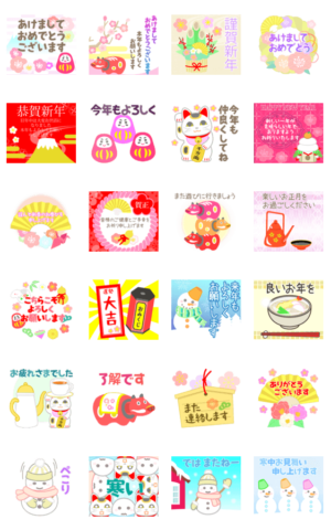 雰囲気の良い年末年始に使えるスタンプですね。可愛い色合いで素敵です。
