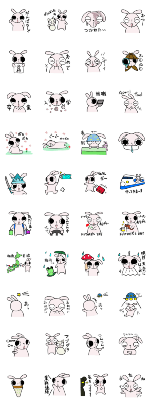 うさぎのうーしゃん第4弾。受験、卒業、入学からゴールデンウィーク、母の日、父の日、梅雨まで春のスタンプ満載です。rico より発売