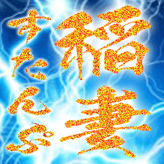 金の筆文字と稲妻背景スタンプのダウンロードはこちら↓