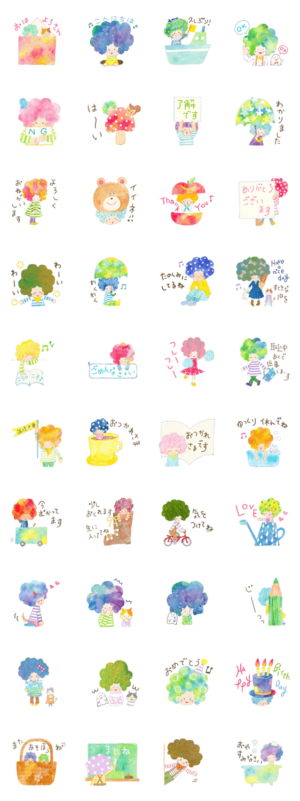虹色&モコモコ頭のアフロ君が、挨拶、お礼、連絡など毎日よく使う言葉を水彩画のメッセージスタンプで伝えます。 虹色アフロ君が、毎日よく使う言葉を伝えます。