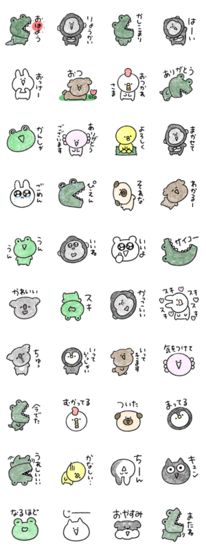 シュールで小さい生き物たちのクレヨン風スタンプです。eribo より発売