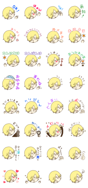 麦わらの一味のサンジ好きのためのスタンプ。普段よく使う感謝と了解を多めにしました。