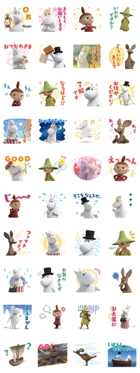 TVアニメ「ムーミン谷のなかまたち」のスタンプ。これまでにないふんわり3Dタッチで表現も豊かに、敬語で使いやすいスタンプは日常会話はもちろん新生活にもぴったり♪