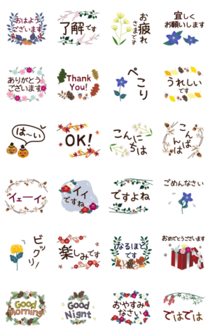 飛び出す大人かわいい癒しのお花スタンプ3はでか文字秋冬の花Ver。ポップアップで日常的な気づかい、敬語丁寧語で毎日使える♪ 女子力高め #初売りスタンプmugiko より発売
