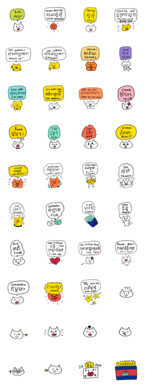 カンボジア語ネコさん(クメール語) スタンプ画像一覧