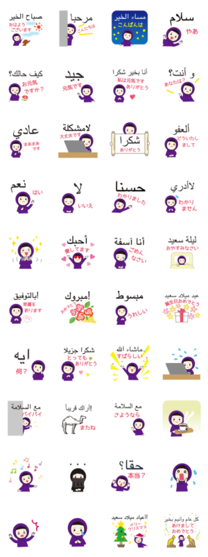 アラビア語と日本語 女性用 スタンプ画像一覧