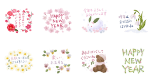 大人かわいい冬の花と年始の挨拶 スタンプ画像一覧