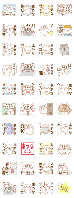 あやなさんが使うスタンプ。彩名,彩菜,彩奈,彩夏,彩那,文菜,礼奈,絢奈,綾奈,綾菜,綾那など全国のあやながつく人専用のスタンプ