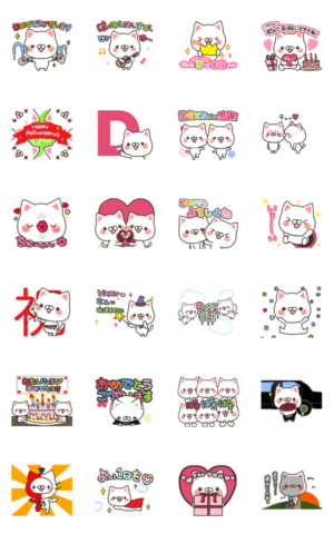 可愛いねこさんたちがお誕生日やおめでたいことを全力でお祝いします☆ お祝いの言葉や感謝の気持ち、日常的にも使いやすいスタンプが満載☆