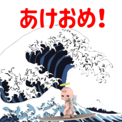 エンジェルの新年用ポップアップスタンプバージョン。おせち料理,お雑煮,花火,賀正,鏡餅,餅つき,富士山,丑年,合格祈願,羽子板,北斎等色々ごちゃごちゃはいってます。