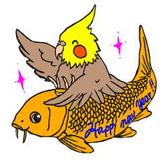 オカメインコツキミと錦鯉キンタの仲良しスタンプです。toribow より発売