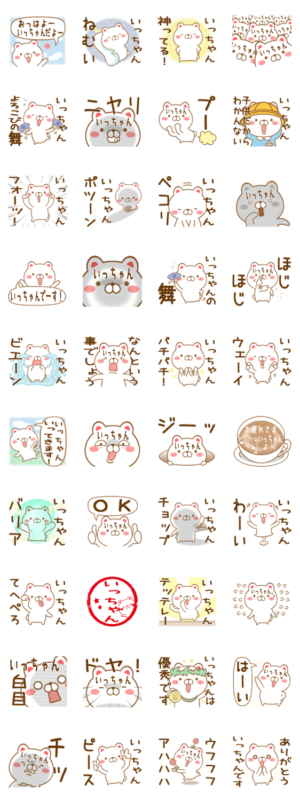 いっちゃんが使うスタンプ。いつみ,いくみ,いちろう,いちたか,市原,市川,ゆういち,いずみ,いおり,いちか,いくほ,石田,飯田,石川,伊藤,いずみなどいっちゃん専用のスタンプしん より発売