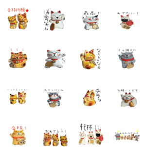 紙粘土で作った招き猫のなんだかめでたいスタンプです。うさぎのりん より発売