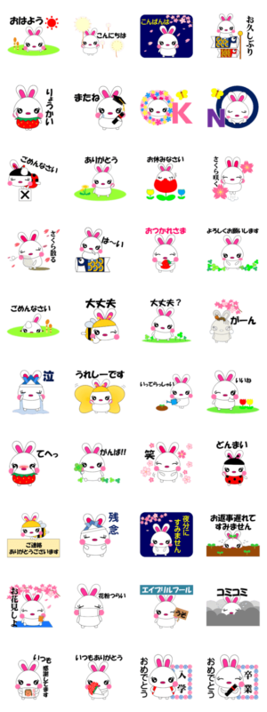 女子力が高くとてもおしゃれなかわいいうさぎのぴょこぽこの春バージョン。桜、お花見、花粉症、入学、卒業、受験、母の日、エイプリルフール、こいのぼり、子供の日など