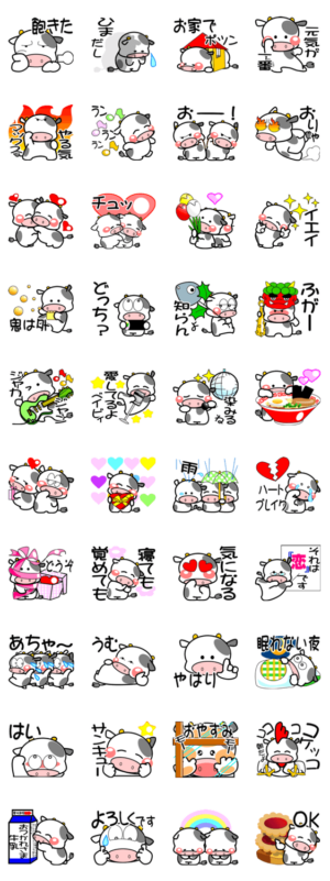 毎日楽しく使える子牛のモーちゃんが愛がいっぱいスタンプです。