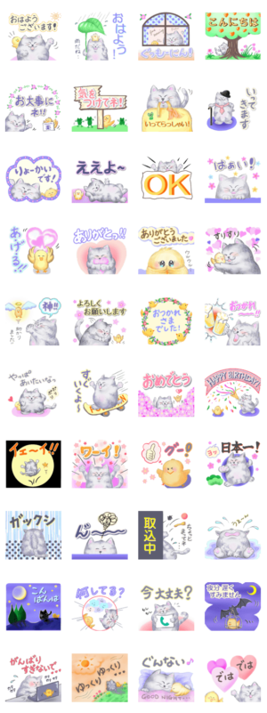 ちょっぴりおデブな猫、福ちゃんと 仲良しのピヨのスタンプです。ぜひ、仲の良い家族や友達、恋人同士で使って下さいね。