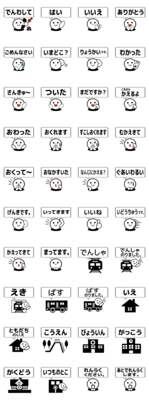 キッズ、シニア用らくらく定型文。子供、きっず用によく使う言葉をチョイス。待ち合わせ、おくりむかいに特によい。子供や親にプレゼントし使ってほしい。誰でも使える。あんじープロジェクト より発売