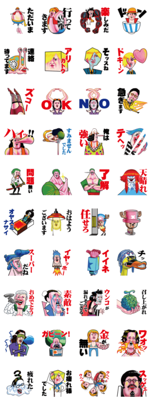 ワンピースキャラのキモイテイストのスタンプです。マニアックな方はどうぞ。