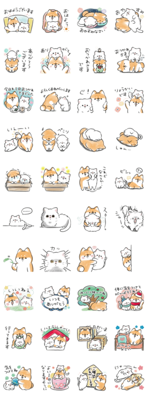手描きイラスト風のしばいぬとねこのスタンプです。ふんわりやさしいスタンプをラインに飾って癒されましょう。