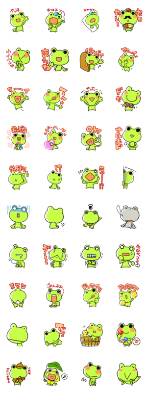 日常で使えそうな、そうでもないような、カエルさんのスタンプです。表情豊かで、なかなかカワイイ子ですぞ。