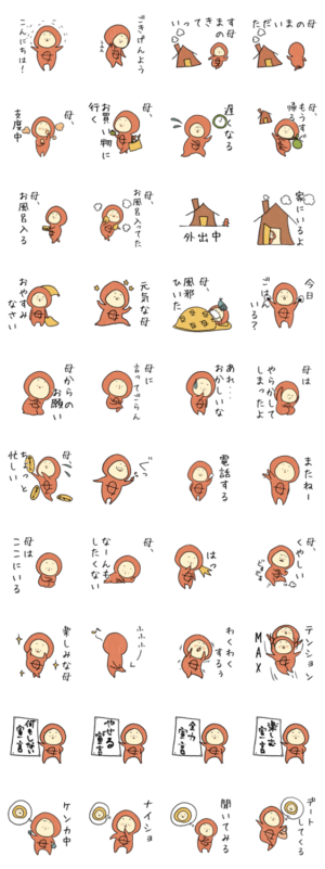 母だよスタンプ第二弾。 お母さん、家族とのコミニュケーションにどうでしょう。 ゆるく可愛く使いやすいスタンプです。o-mori より発売