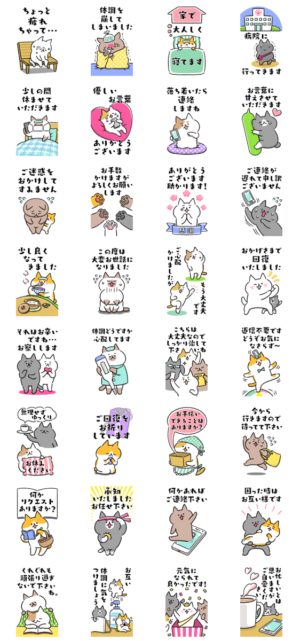 体調が悪い時の連絡に便利なスタンプです。体調不良の相手を気遣う言葉も盛り込みました。敬語なので幅広く使用できます。