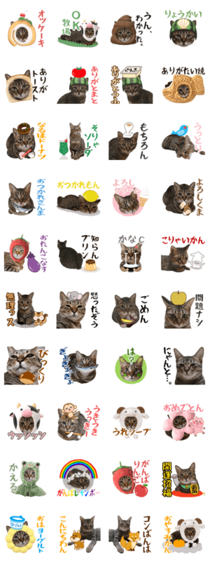 キジトラ猫のデカ文字にゃんこスタンプ。ダジャレだけど使いやすいフレーズてんこ盛り。