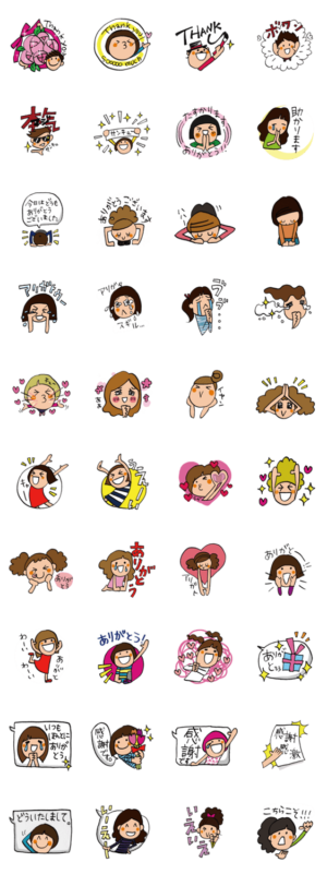 感謝の気持ちを伝えるmissaのスタンプです。ありがとうの気持ちで幸せに。ハッピーに40個。ありがとうのお返事や、感謝の雰囲気を伝えるスタンプ、吹き出しもあります。missa(ミサ) より発売