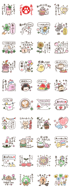 誰にでも使える、毎日ずっと使える、「感謝のキモチ」詰め合わせです。親友や友達、先輩や仲間に目上の方、彼氏や家族etc...大切な人に毎日「ありがとう」をどうぞ。