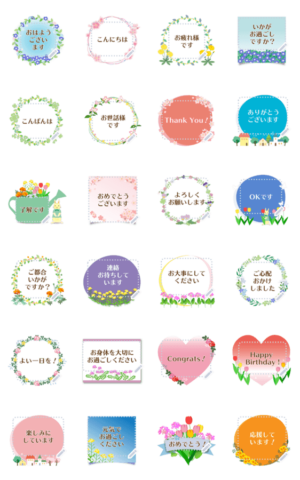 春の花フレーム✱メッセージスタンプ。好きなテキストを自由に入力して、毎日の挨拶やおしゃべりにご利用ください。 #初売りスタンプ 現在この商品は一部のスマートフォン版LINE 10.3.0以上のトークルームでのみ使用できます。動作環境の最新情報はヘルプをご確認ください。acacia より発売