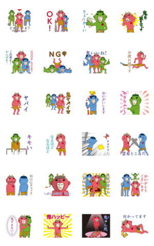 鬼は滅びません! ああ。ダンディシリーズの新キャラです。何かと悪者になりがちですが、こいつらはいい奴らです。節分にもどうぞ #初売りスタンプDenki-man より発売