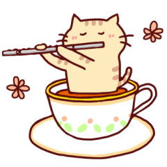 カップに入った猫の可愛さといったら!そしてフルートを吹くのがまた良い
