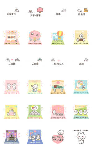 飛び出す!?おめでとうさちゃん スタンプ画像一覧