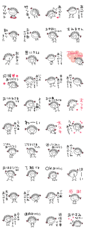 くるリボン。ありがとう編。「サンキュ」「大丈夫ありがとう」から「感謝」まで。くるリボンで、ありがとうの気持ちを届けよう。家族、学校、お仕事でも。#初売りスタンプ
